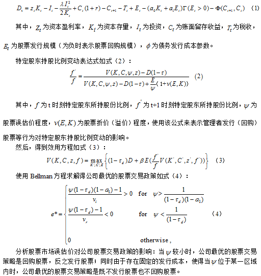 2.在股票市场存在误估价的情况下,本文建立了公司最优的政策行为框架。