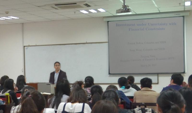 报告会上,杨教授回顾了相关历史文献中的投资模型并在McDonald和Siegel (1986)等研究的基础上,构建了不确定情形下融资受限公司的投资模型,通过对模型的分析发现外部融资成本的存在使得公司更乐于在投资时使用内部资金,公司的最优投资策略和价值依赖于其盈利情况和现金持有。研究表明,内部资金更充裕的公司倾向于使用内部积累资金为项目融资,投资障碍与公司内部资金是非线性、非单调关系;融资受限公司为实现价值最大化更倾向于在早期加速投资,以降低后期投资不足的影响。